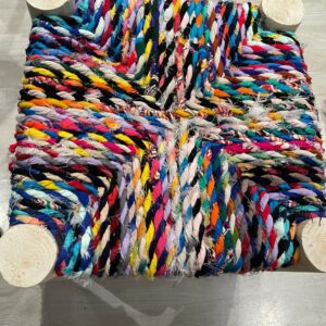 Tabouret en Boucharouite blanc – Pièce unique en tissus recyclés