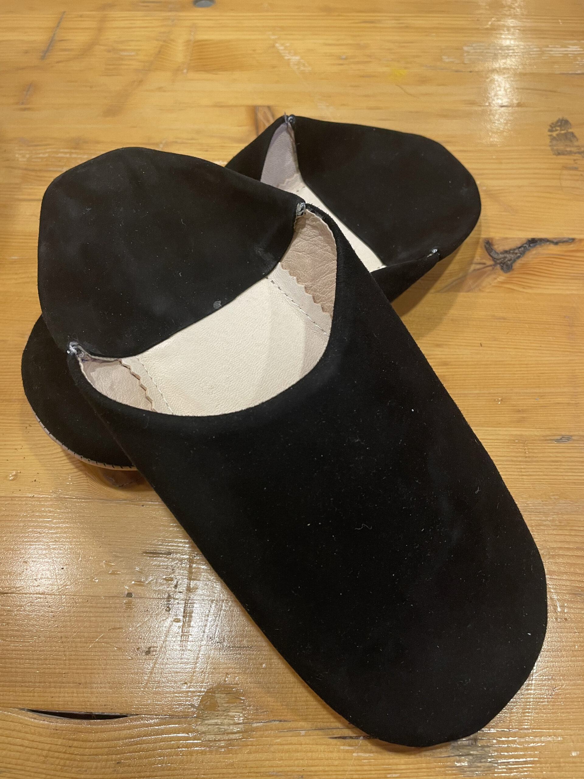 La babouche en cuir veau velours est un chausson, éviter de les mouiller.
