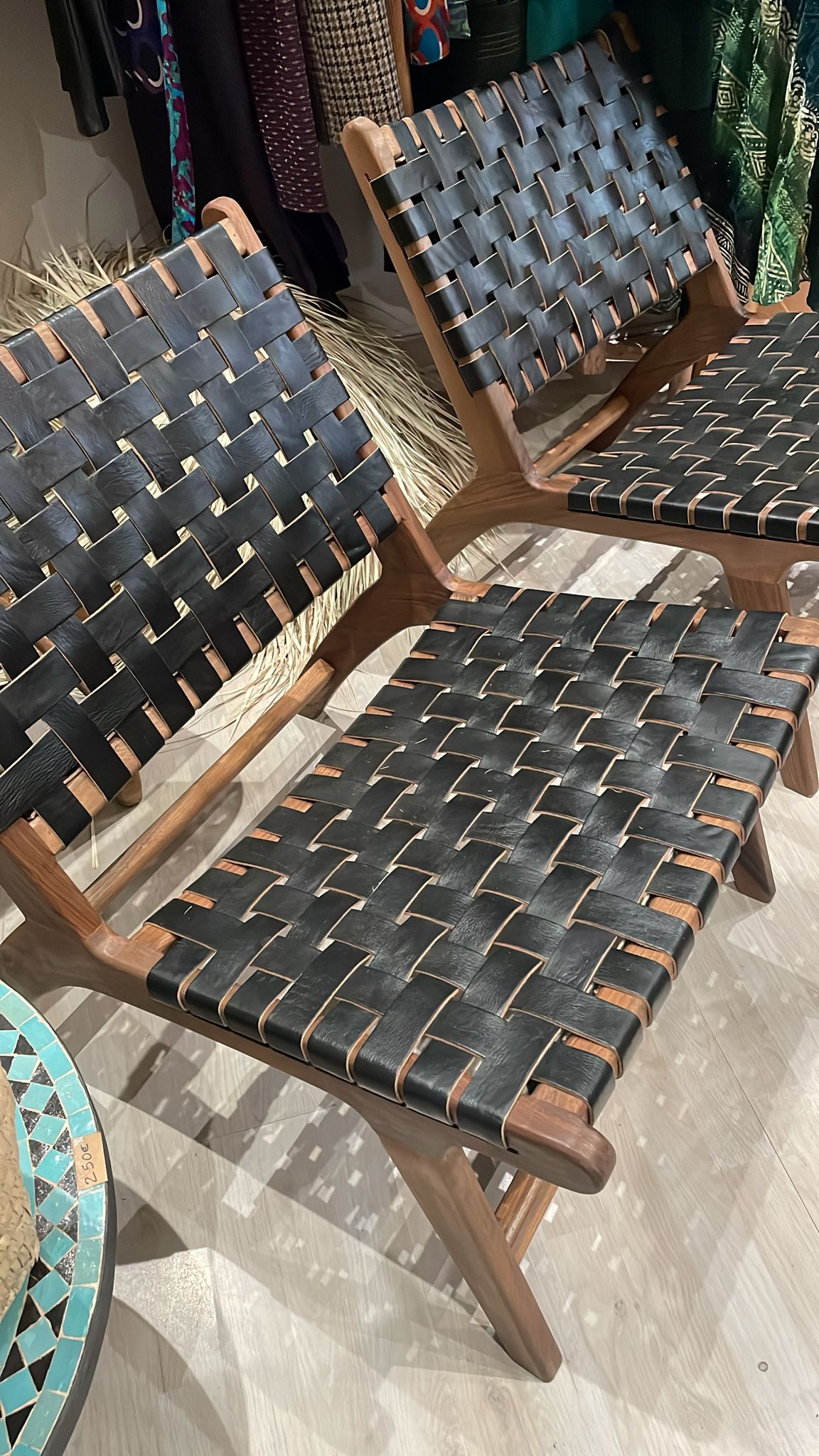 L’assise et le dossier sont réalisés à la main selon une technique de tressage artisanal, qui apporte souplesse et confort.